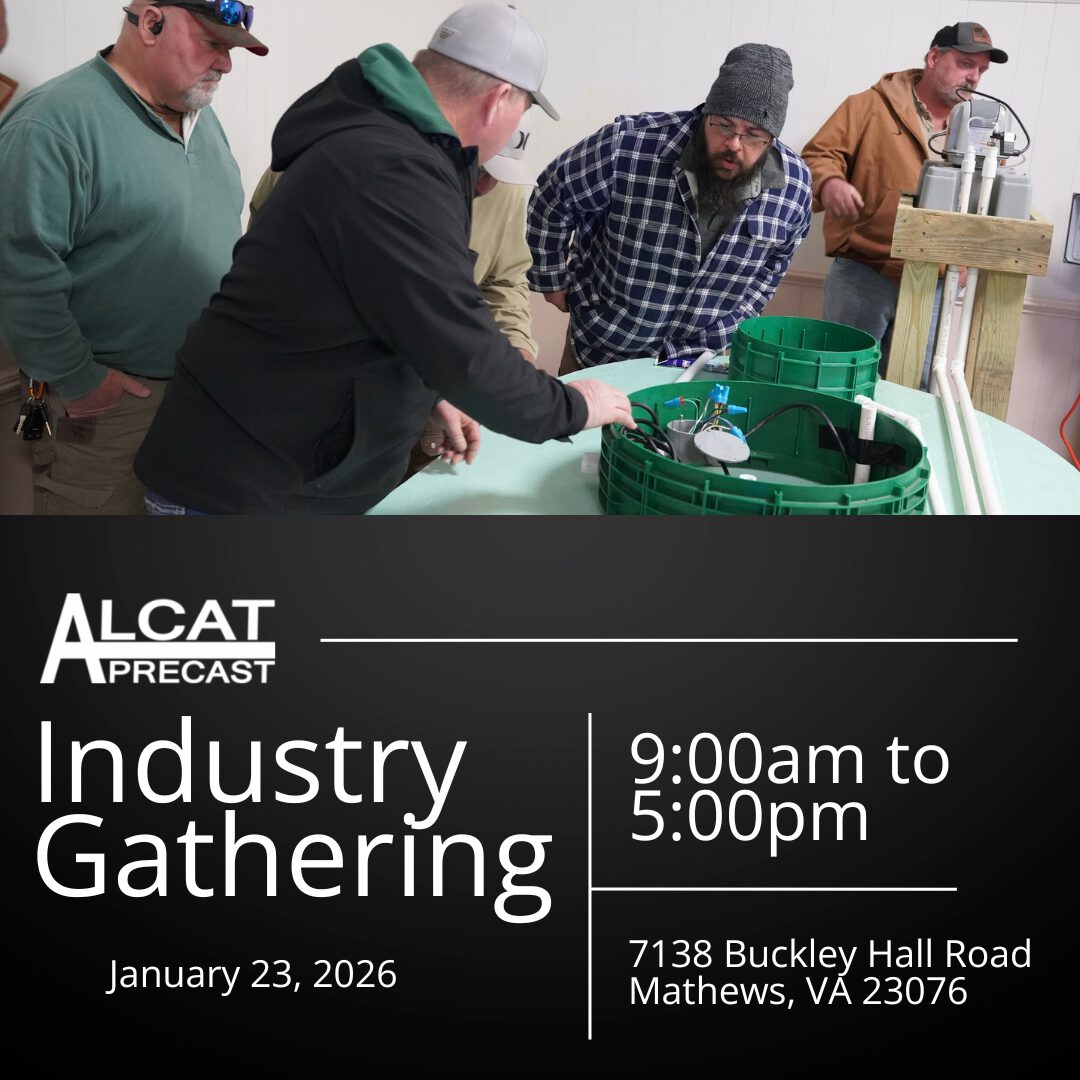 The Alcat Precast Industry Gathering will take place on January 23rd, 2026, at the Piankatank Ruritan Club in Hudgins, Virginia! Industry professionals, experts, and enthusiasts will come together for a full day of insightful presentations, hands-on learning, and valuable networking opportunities.